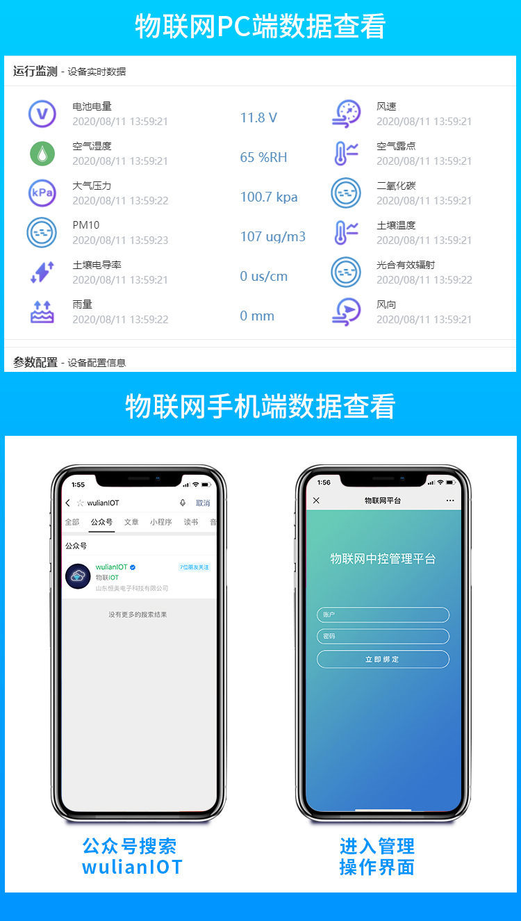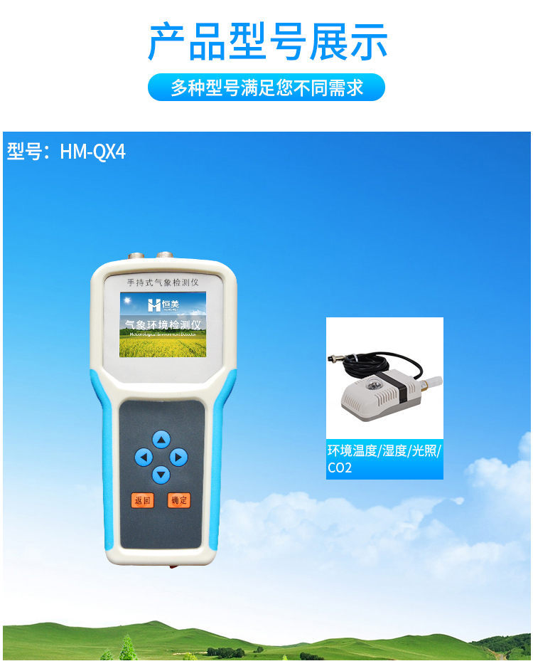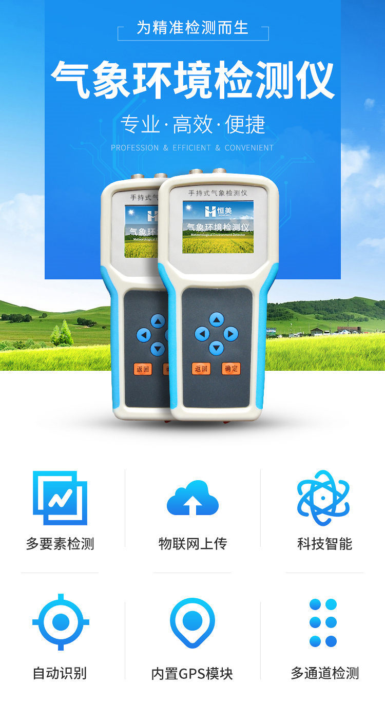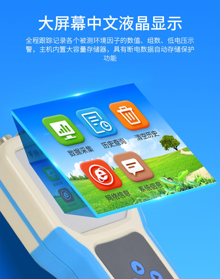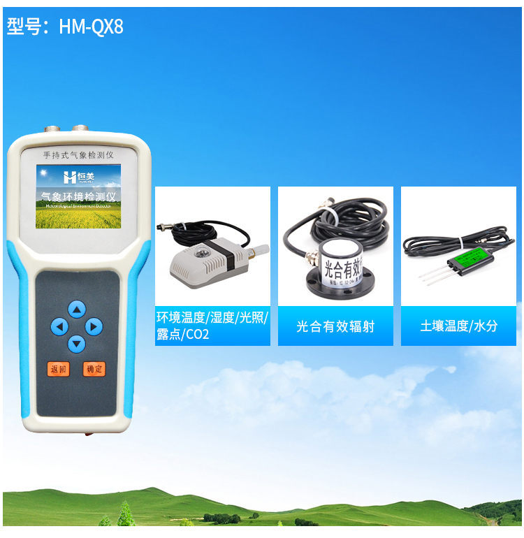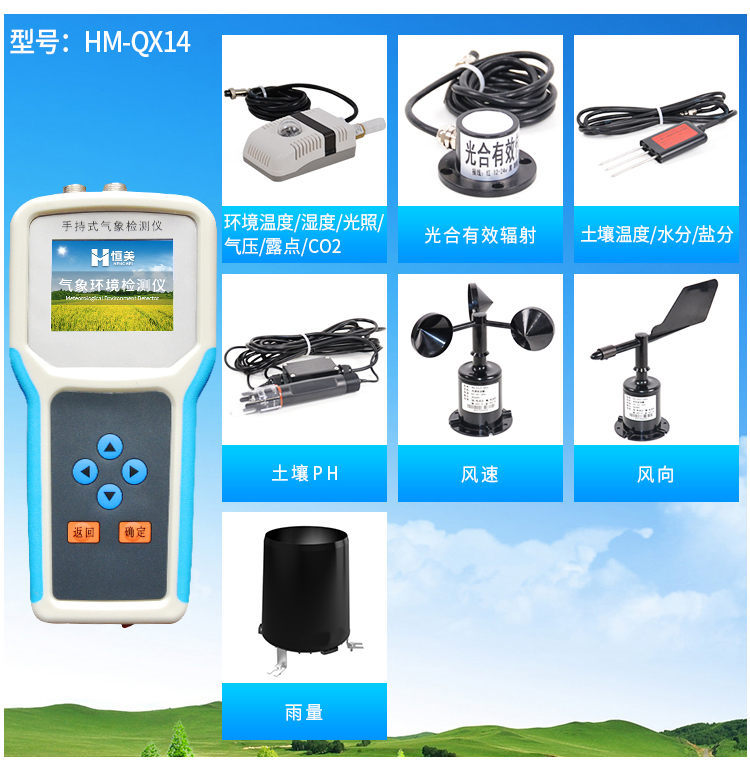 手持式智能農業(yè)氣象環(huán)境檢測儀是我們專門針對農田、草場局部小尺度環(huán)境設計的,對與植被和農作物生長密切相關的土壤、水氣等環(huán)境參數(shù)監(jiān)測的農田小氣候站。它主要觀測與農業(yè)相關的空氣溫度、空氣濕度、光照強度、二氧化碳濃度、露點溫度、光合有效輻射、土壤溫度、土壤濕度、土壤鹽分、土壤PH等10個環(huán)境參數(shù)氣象要素,為農業(yè)科研、農業(yè)生產等提供良好的支持。