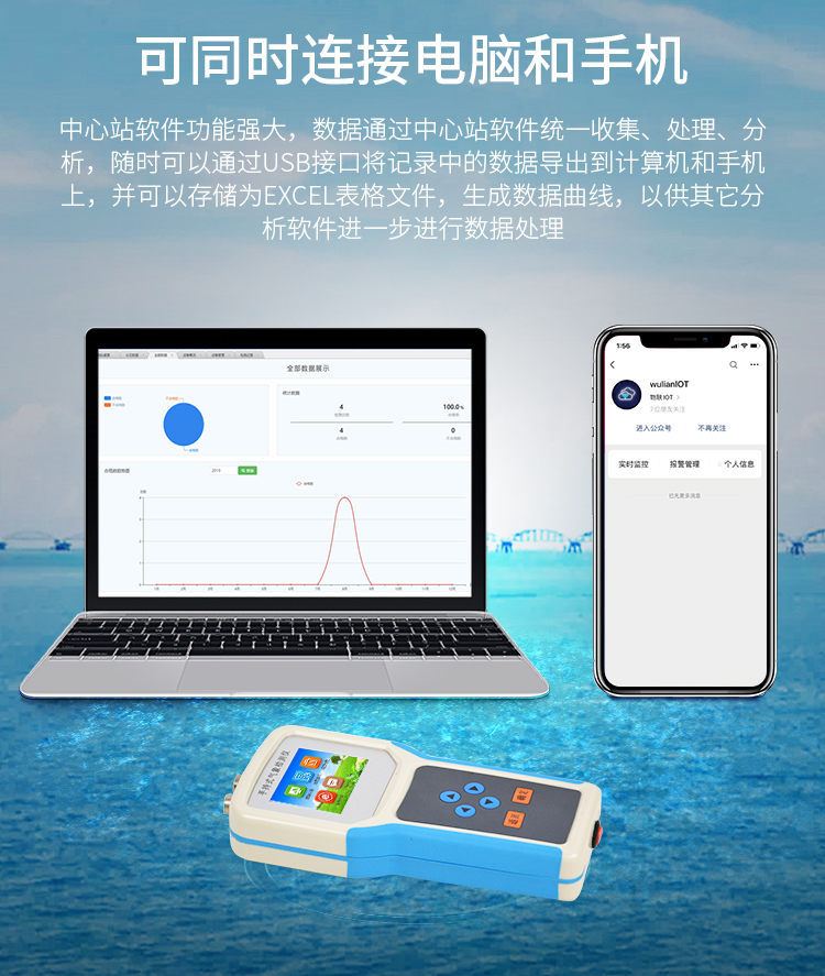 中心站軟件功能強大,數(shù)據(jù)通過中心站軟件統(tǒng)一收集、處理、分析,隨時可以通過USB接口將記錄中的數(shù)據(jù)導出到計算機上,并可以存儲為EXCE表格文件,生成數(shù)據(jù)曲線,以供其它分析軟件進一步進行數(shù)據(jù)處理。具有設置超限區(qū)域著色功能,超限數(shù)據(jù)變色預警,可作為環(huán)境評價的一個依據(jù)。